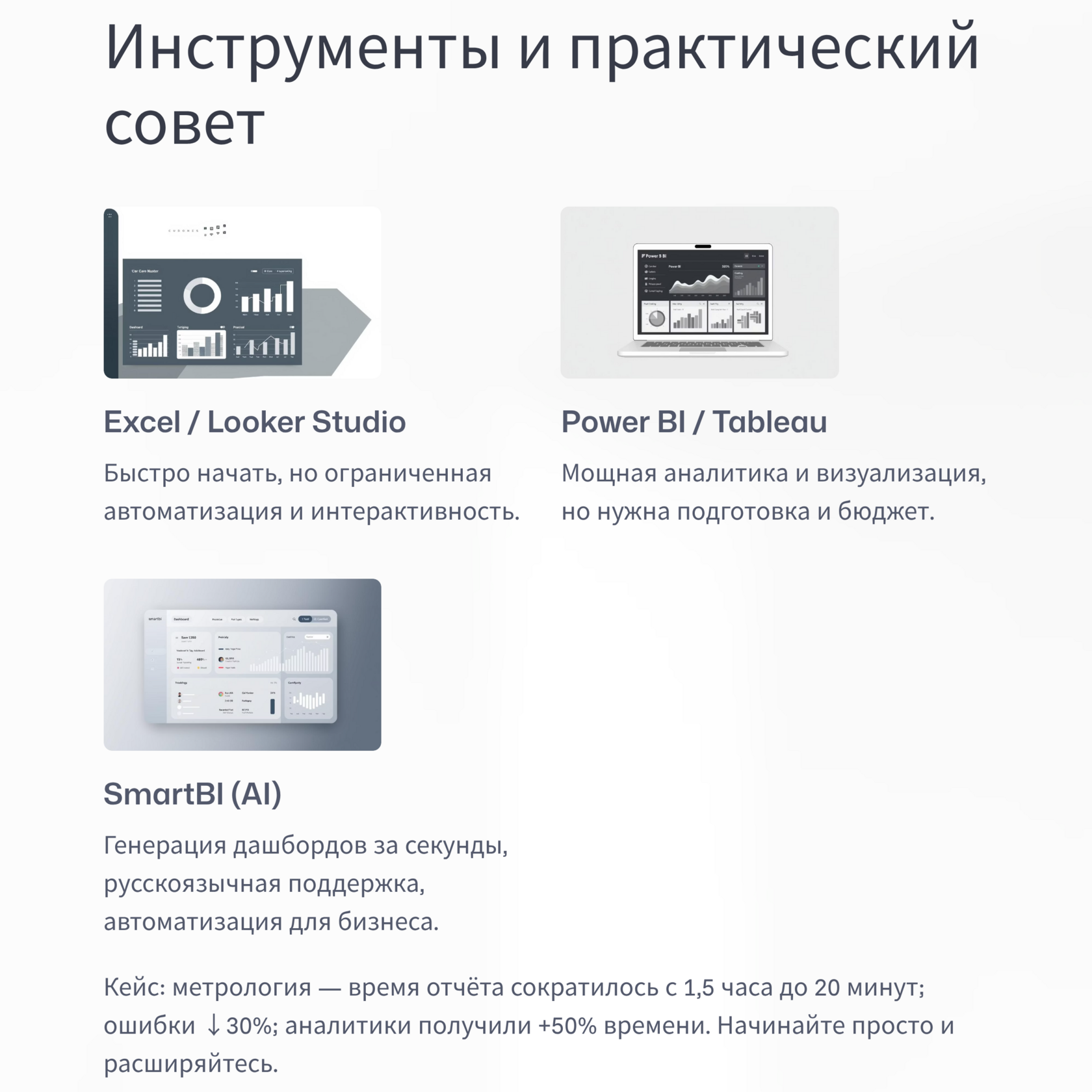 Как показывает практика (вспомним кейс метрологической компании), автоматизация создания дашбордов с помощью современных решений может ускорить процесс в 4-5 раз, что напрямую влияет на эффективность бизнеса.